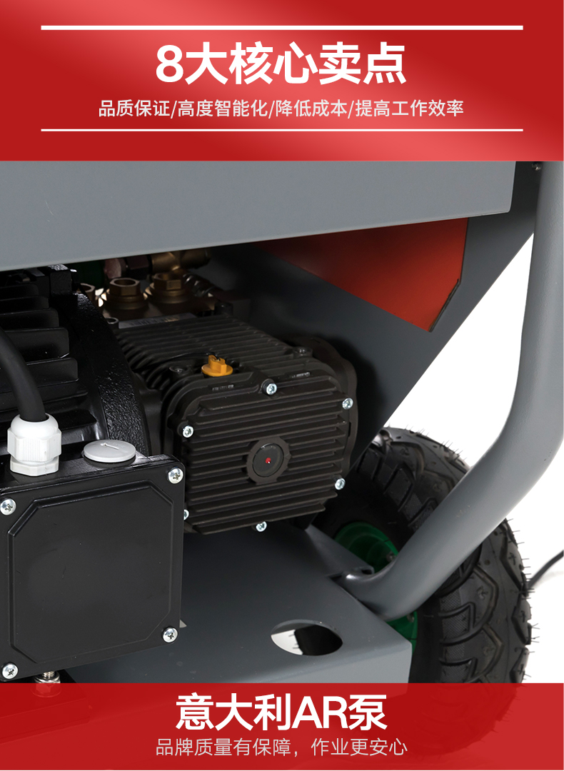 智能降壓,雙過濾,AR泵,語言播報(bào),8大核心賣點(diǎn):意大利AR泵、嘉陵本田發(fā)動(dòng)機(jī)、不銹鋼30米卷管器、意大利MV調(diào)壓閥、ETC自動(dòng)怠速功能、配備急停裝置、單人操作系統(tǒng)、加厚橡膠充氣減震輪胎