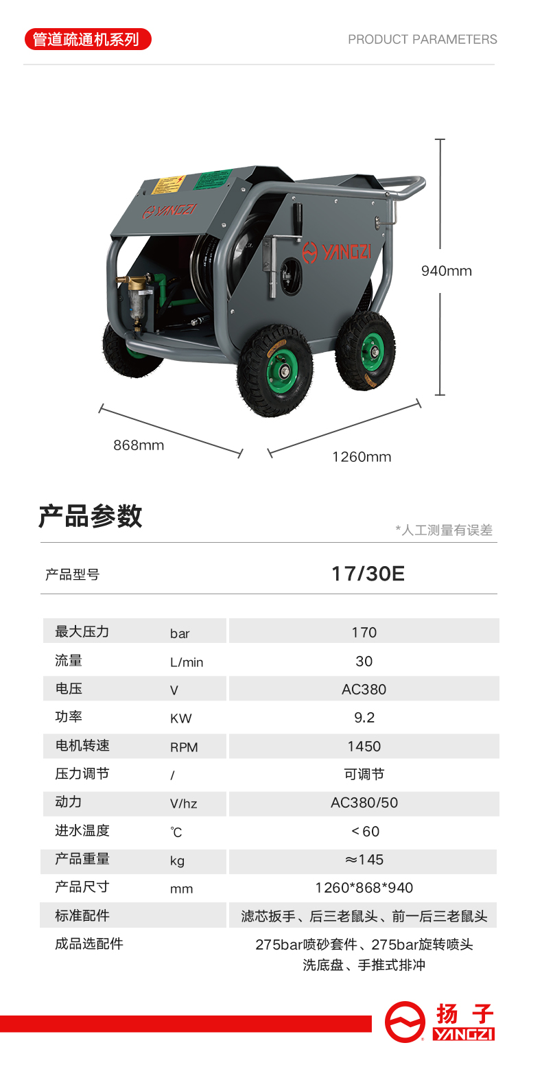 自營揚(yáng)子電動(dòng)高壓清洗機(jī)17/30E(已下架)